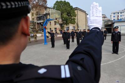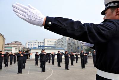 视界网签约摄影师:宋文。23日,参加一年一度新春集训的宣恩县公安民警在接受交通手势训练。参加”练作风、练体能、练技能”、开展作风整顿是该县全体政法干警连续4年来新春上班要做的第一件事,他们必须在经过一周的集训并完成所有考核科目后奔赴各科室、中队、派出所开始新一年的工作。作者单位:宣恩县新闻中心联系电话:13986850929