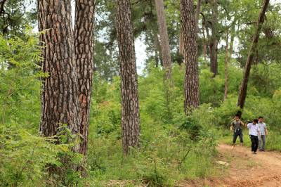 5月24日,笔者在竹山县北部山区发现一处当地最大面积的古松树群落。这一群落位于该县双台乡水坪村七组境内的孙家湾老坟山。据勘察,这处古树群面积约10余亩,有近40株树高约20米上下,胸径大多为两三人合抱,单株木材蓄积在4立方米以上,树龄在200年以上。