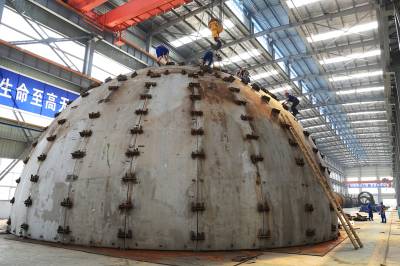 昨天(24日), 武汉一冶钢构公司为湖北利川一家燃气企业建造的1台超大型双层低温球罐完成预拼装,经验收合格,第一批球罐壳板即将运往利川进行组装焊接。