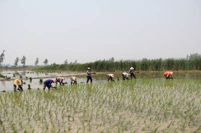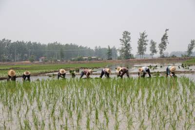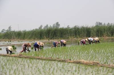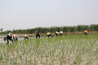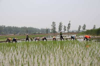 > 留守女互助抢插水稻