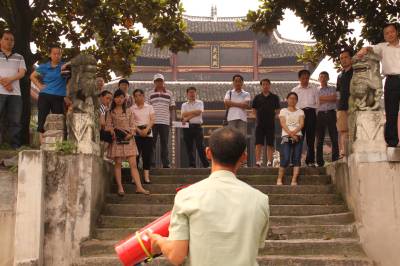 浠水博物馆“防火未燃”(图) 5月25日,全国重点古籍保护单位、浠水县博物馆举行消防演习。火警发生后,迅速组织游客紧急疏散、向消防部门报警、使用灭火器。全县文化系统消防责任人观摩了演习,受到一次深刻的防火防灾教育。 王峰