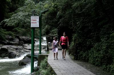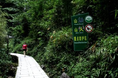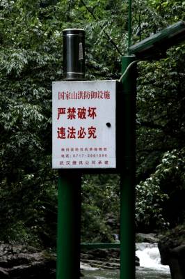 5月26日,游客正从秭归县三峡竹海景区内山洪地灾防治警示标志旁走过。据悉,去年12月,国家气象局将秭归县定为山洪地质灾害防治气象保障工程试点县,在该县12个乡镇建设了30个雨情监测自动气象站,并通过信息联网传输,初步形成了集监测、预报、预警、服务、评估、防御于一体的山洪地质灾害气象保障服务体系,为全县防灾减灾提供了一张“安全网”,在全国率先建成山洪地质灾害防治气象保障工程。