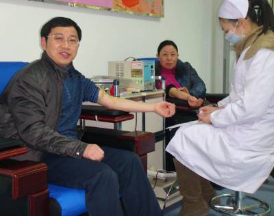 2月23日,恩施州卫生局局长张紫阳和妻子一起来到州中心血站献血,这已是他自2007年任州卫生局局长以来第5次参加无偿献血,献血总量达1500毫升。在他的影响下,他的妻子也加入到无偿献血的队伍中来,目前已累计献血3次共900毫升。据血站负责人介绍,近日来恩施州各类血型库血全面告急,其中A型血和O型血尤为紧张,为此,血站紧急呼吁各界爱心人士伸出援手。周光兵摄恩施日报社记者部周光兵13277584567
