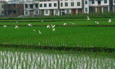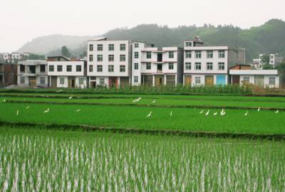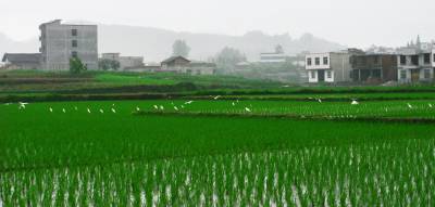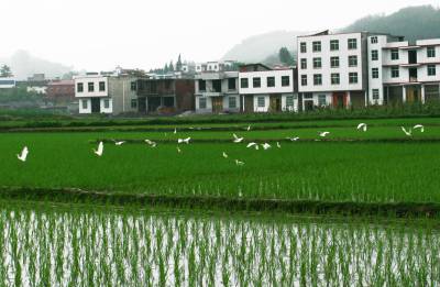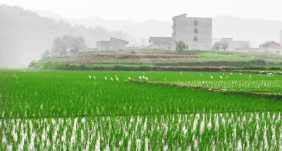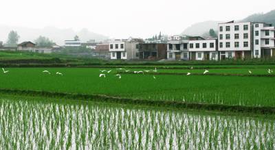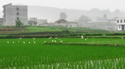 白鹭是益鸟之一,白鹭生性爱洁净,才生一身一尘不染雪花衣。白鹭大多生活在绿色环保的大自然中。据当地老百姓介绍:两年前偶尔看见只把两只白鹭人们都看个稀奇,从去年开始可以时不时看到三五上十只白鹭在田坝飞来飞去,最多也不过一二十只,而今年的白鹭竟能把这大面积的秧田飞得白花花的,一老农还调侃道:你来的不是时候,正好遇上下这么大的雨,原来白鹭也怕淋雨,那成百上千的白鹭都被大雨吓飞到哪儿朵雨去了,要不了一会会全都飞走,不信你晴天来看,这大面积的秧田就两种色——绿秧白鹭(本报视界网温大树 摄)