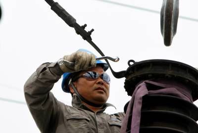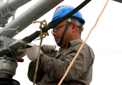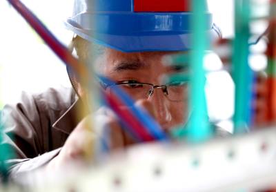 湖北沙洋:塔上“穿针引线” 消除线路隐患