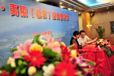 2013年5月25日,宜昌市夷陵区在北京亦庄经济技术开发区搭建展演三峡民俗文化的戏台,举办三峡-夷陵(北京)招商推介会,中航工业集团、中国中化集团等2家世界500强企业,10多家中国500强、央企、上市公司和跨国公司,以及来自京津冀地区50多家企业应邀参加活动,共签订机械、材料、医疗器械、建材、环保及文化旅游等多个产业的项目投资协议11个、战略合作协议1个、技术合作协议1个,协议投资额达到100亿元。
