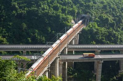 花湖国际机场铁路联络线首个连续梁0#块顺利浇筑(客户端采稿)