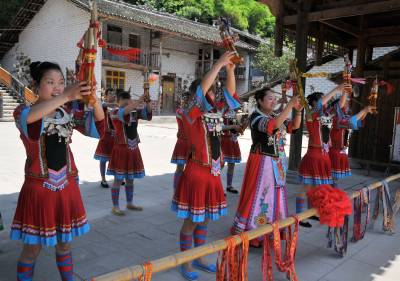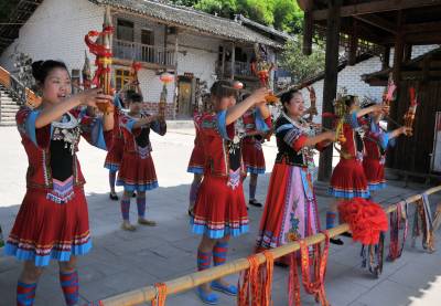 芦笙声声迎贵宾 5月27日,在恩施市芭蕉侗族乡枫香坡风情寨,侗族姑娘吹起欢快的芦笙,迎接来自远方的游人。 芭蕉侗族乡枫香坡围绕侗族文化进行打造,围绕穿一身侗族衣、当一天采茶人、试一回传统活、看一台民族戏、品一杯富硒茶、吃一餐农家饭、歇一稍风雨桥、宿一夜侗家寨,打造农村休闲旅游。通过整体开发,目前,风情寨已建成一个集休闲、娱乐、乡村体验于一体的全国知名侗乡风情山寨。 通讯员 谢顺 摄 恩施市新闻中心 记者 谢顺 13277590198