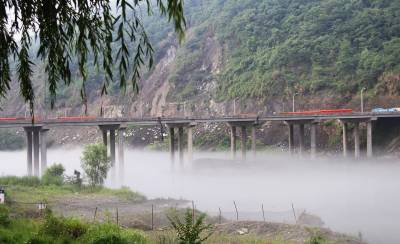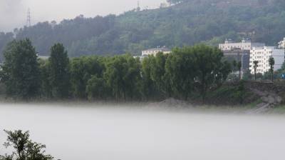 5月27日早上5点,在竹山县堵河沿岸拍下一缕缕银带,景色十分壮观。(视界网程平) 竹山县林业局13872773800