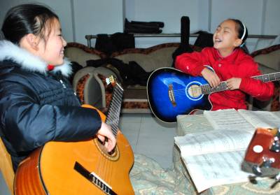 2月24日,宣恩县民族实验小学的学生正在一家吉他培训机构练习吉他。在这一个多月的寒假期间,该县的中小学生通过参加舞蹈、绘画、跆拳道、声乐等兴趣爱好课外培训和各种健康有益的活动,陶冶了孩子们的艺术情操,提高了他们的美育和综合素质,过了一个开心快乐又有意义的寒假。