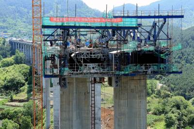花湖国际机场铁路联络线首个连续梁0#块顺利浇筑(客户端采稿)