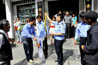 5月28日,恩施市红土乡林业执法人员正在市场上巡查,缴获了一条4斤多重的蛇。