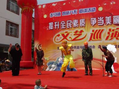5月28日,鹤峰县走马镇以“提升全民素质 争当美丽村民”为主题,通过文艺汇演形式的宣讲活动在白果村拉开序幕,各村的文艺宣传队以民间艺术花鼓灯、说唱,舞蹈等形式表演的节目赢得观众的阵阵掌声。该镇注重引导,全民动员,创新宣传形式,结合实际,积极开展全民素质提升工程,让鹤峰县委提出的“四新八无”的具体要求家喻户晓,入脑入心,促全民素质大提升,创优发展环境。