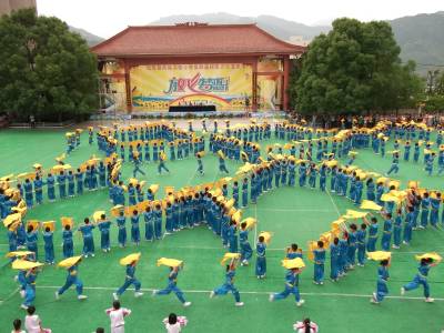 29日,学生正在表演大型少儿民族舞《放飞梦想》。当日,巴东县信陵镇实验小学第四届校园文化艺术节开幕。 近年来,该校以校园文化艺术节为品牌,全力打造校园文化名校,先后获“湖北省优秀文化艺术传承学校”、“湖北省德育精品案例学校”等荣誉。 (本报视界网 宋发伦 摄)