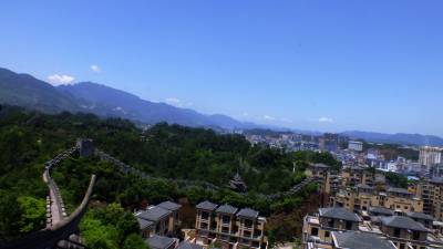 恩施土司城,是土家族地区土司文化标志性工程,黑瓦木屋,尽显民族特色与传统情调,可是土司城外,却是一派现代氛围。一墙之隔,隔开的是古代与现代的差异。
