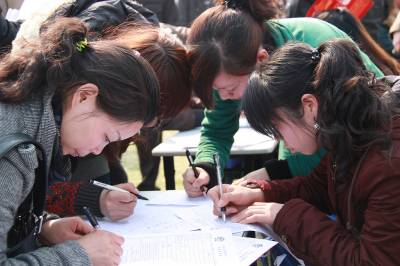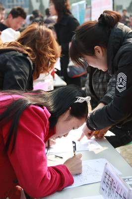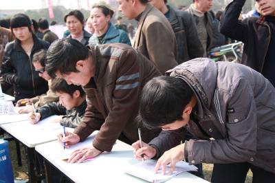 2月22日,在汉川市组织的大型劳动力招聘会上,不少过去在外地打工的农民工,今年选择了在家门口的企业里挑选一份工作。由于这几年市域经济的发展,汉川有了一批有一定实力的企业。在这里打工,收入、待遇和在外面打工差别不大,还能够照顾家人。王大建摄通联:汉川市交通局(431600)