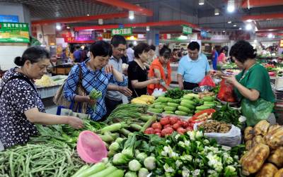 5月29日,市民在隆中路市场选购蔬菜,市场内塑胶走道,地面干净,空间高大,宽敞明亮区分明显,摊位整齐。宜昌市用三年的时间,投资2.1亿元,在城区先后新建和改造了48家标准化菜市场,给市民提供一个舒适的生活环境。