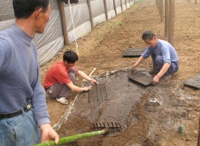 2月25日,湖北省鄂州市鄂城区杜山镇农民正在抢搭蔬菜大棚。近日,湖北各地天气晴好,一些农民春节刚过就陆续下地忙起农活,为今年农业丰收打下基础。