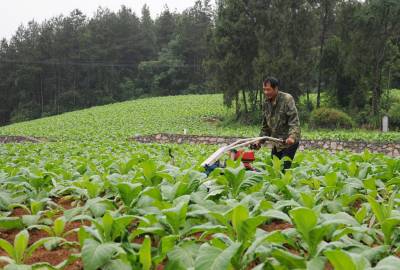 5月29日,恩施市烟草城郊基地单元阳雀坝烟叶基地,烟农正在培土。 今年,该市烟草城郊基地单元种植面积达到1.6万余亩,目前长势良好。