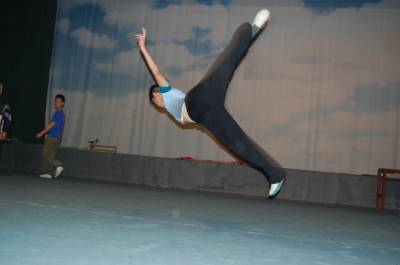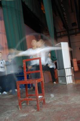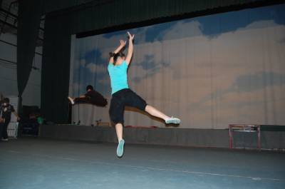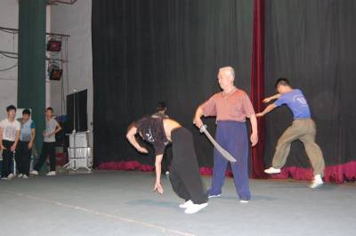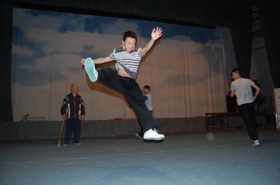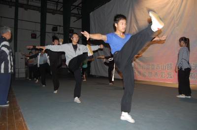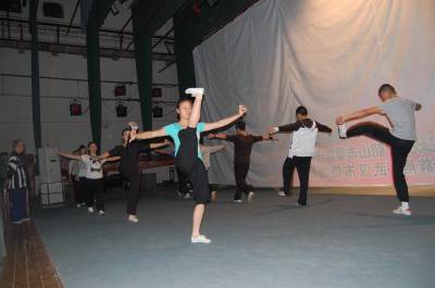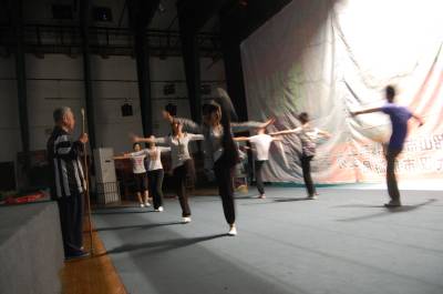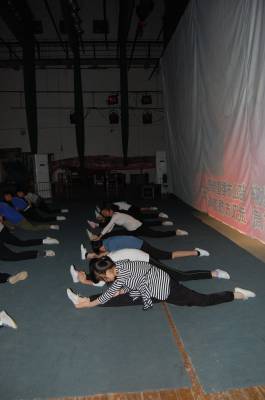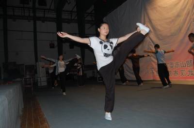 5月30日,云梦县楚剧团青年学员在老师带领下苦练基本功。