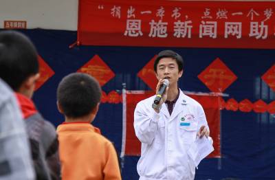 2013年5月30日,恩施州急救中心的专家在建始县花坪乡关口村小学,给师生们进行安全急救知识教育的情境。 当天,专家们结合当地实际,讲解如何及时处理一氧化碳中毒、毛狗蛇动物咬伤、溺水、摔伤等急救知识,他们利用人体模型,具体示范讲解,手把手地辅导师生实际操作,给师生们上了一堂具体形象的安全急救课。