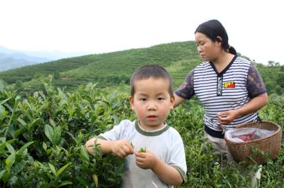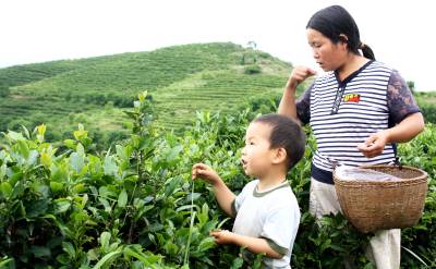 从小爱劳动 周翔是省新农村建设示范村竹溪县水坪镇前进村的孩子,明天是“六一”儿童节。 5月31日,今年4岁周翔正在帮妈妈采摘茶叶,用劳动迎接节日来临。(视界网 王忠春 摄)