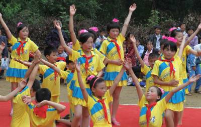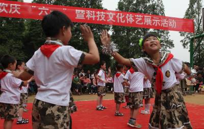5月31日,麻城市梅家楼小学师生载歌载舞庆祝“六一”儿童节。为庆祝“六一”儿童节,麻城市围绕“怎样让儿童感受快乐”的主题,在尊重儿童意愿的情况下,积极开展“认亲”、“同欢”、“联谊”等形式的活动,陶冶儿童情操,丰富留守儿童的情感。本报视界网 宋杰 摄