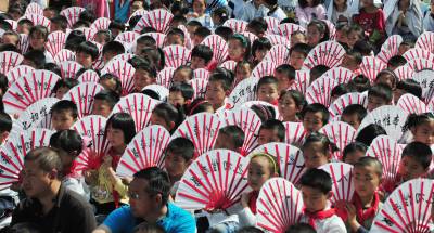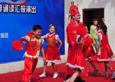 湖北秭归:外国游客乐游屈原故里