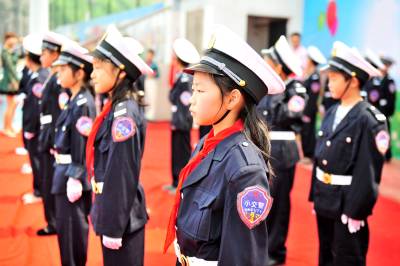 校园小交警 展示军姿庆“六一”
