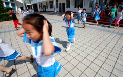 近日,荆门市掇刀区十里牌小学进行了防地震紧急疏散安全演练。近2000名学生在2分半钟内全部疏散到安全场地。视界网 张彩云 摄