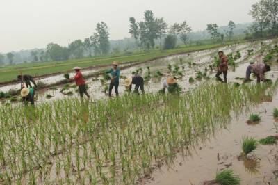 6月1日,几名“留守妇女”在安陆市王义贞镇大桥村5组抢插中稻。自5月中、下旬以来,安陆市全面进入抢收、抢种的“双抢”季节,逾万名“留守妇女”积极投身到“双抢”之中,既为无劳户解决了“双抢”难题,也为自己挣得了一笔收入。据了解,目前该市油菜籽、小麦已经抢收完毕,中稻已抢插43万余亩(占总面积的80%)。 (本报视界网:王代金 摄影,电话13986495112)