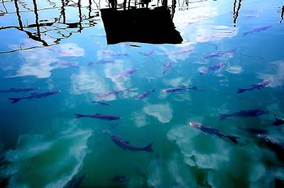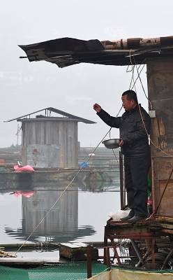 视界网签约摄影师:宋文、田丹。26日,宣恩县珠山镇双龙湖的水面上,村民罗光毅正在给中华鲟喂食。该县把小水电产业作为工业经济发展的现实产业,自本世纪初开始实施”水电强县”战略,先后建电站24座,其大小水库不仅成为特色养殖基地,同时也促进了餐饮业、山区生态旅游业的发展。作者单位:宣恩县新闻中心联系电话:13986850929