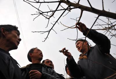 视界网签约摄影师:宋文。26日,宣恩县珠山镇卸甲坝村甜柿基地上的农民在学习甜柿剪枝技术。该县以有机茶生产、贡水白柚种植等为主导产业发展农村经济,并扶持了一批与基地对接的龙头企业。连日来,该县组织500名县、乡、村党员干部下到各自的联系村,开展”访情问计”活动,组织农民发展特色基地,抓好春耕生产。作者单位:宣恩县新闻中心联系电话:13986850929