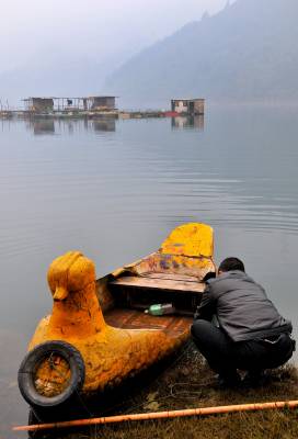 (视界网签约摄影师:田丹)2月26日,宣恩县珠山镇双龙湖社区农民罗光毅正在养殖中华鲟的网箱边忙得不亦乐乎。2009年,罗光毅在双龙湖水库,利用网箱养殖中华鲟获得成功。目前,他的网箱里养殖的中华鲟有200余尾,最大的体重超过50公斤。据了解,鲟鱼是现存最古老的脊椎动物类群之一,肉味鲜美,营养价值高。这种人工饲养的中华鲟,目前每公斤的市场价为200元。单位:《恩施日报》宣恩记者站联系电话:15826682338