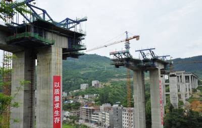 竹山谷竹高速公路建设加快 6月1日,谷竹高速公路竹山县霍河大桥建设工地上机器轰鸣,工人们正紧张地进行浇筑箱梁,呈现一派繁忙景象。谷竹高速公路竹山段全长51公里,设竹山潘口、宝丰两个互通立交和溢水服务区,投资41亿元。 竹山县委、政府与各施工单位加强工程建设协调,加快工程建设进度,以确保2014年底全线通车。(通讯员 袁平凡 摄) 联系方式:竹山县新闻工作办公室 电话:18971913598