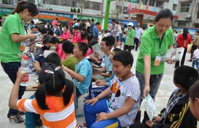 宜城义工为特校孩子送快乐 (视界网 何维国 李锋摄)“献出爱心,愿你开心!”“因为有你,这个世界才会变得色彩缤纷!” “六 一”儿童节当天,宜城义工携手昌慧幼儿园、长贺西饼屋走进市特殊教育学校,与特校孩子们载歌载舞、互动 游戏,共同度节日。义工们不仅为特校孩子们送去了节日的礼物,而送去了温馨和快乐。