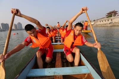 6月4日,两只龙舟在汉江襄阳段训练。当日,两只备战湖北湖北龙舟大赛的队员们开始在汉江上集训。随着端午节临近,一年一度的襄阳龙舟大赛也将如期而至。据了解,襄阳市今年的龙舟大赛将于6月12日在汉江襄阳一桥至二桥之间举行,同时襄阳也升格为第五届湖北龙舟大赛的主会场。襄阳市从2010年起已成功举办了三届龙舟大赛,在端午节里欣赏、参与赛龙舟已经成为襄阳市全民健身的品牌活动,受到了广大市民的欢迎和湖北省体育局的关注。因此,省体育局水上运动管理中心和省龙舟协会决定,今年首次将湖北龙舟大赛的主会场搬出武汉,移师襄阳。大赛将分为两部分,在湖北龙舟大赛中,来自省内各市州的代表队将进行男子10人800米竞速的角逐;在襄阳龙舟邀请赛中,来自全国各地的代表队将和襄阳各县市的代表队一起参与男子20人800米竞速、混合20人800米竞速两个项目的比赛。