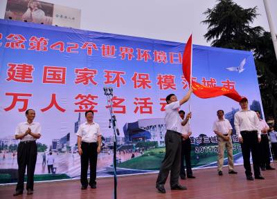 正值十堰市创建湖北省、国家环保模范城市攻坚阶段,为扎实做好创模各项工作,动员全社会力量共同呵护碧水蓝天,紧紧围绕创模中心工作,开展形式多样的宣传教育活动,提高公众环境保护意识,增强公众参与创模热情,营造浓厚的创模氛围,提升全市环保工作水平。十堰市于“6•5”世界环境日举行环保志愿者服务总队授旗仪式,
