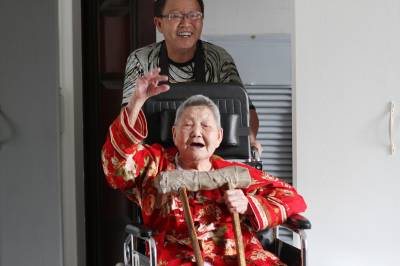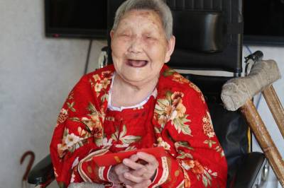 性格十分开郎的李承凤老人,居住湖北宜昌市西陵城区,昨天是她93岁生日,他像开心玩童一样,为前来祝寿亲戚演唱“东方红”和自编自唱歌曲,让大家脸上笑开了花。