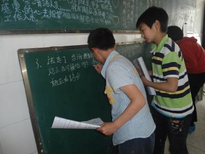 5日,郧县五峰乡德勤希望小学英语教师在课堂上与学生互动、交流。近年来,该县以集教师教、学生学、学生练为一体的《导学练案》为抓手,应用“三维互动 五步导学”探究式教学法,通过教师“比教学”活动开展生本课堂教学,进一步促进师生、生生在合作、交流、展示中学习,培养合作学习能力。(视界网 周学山)