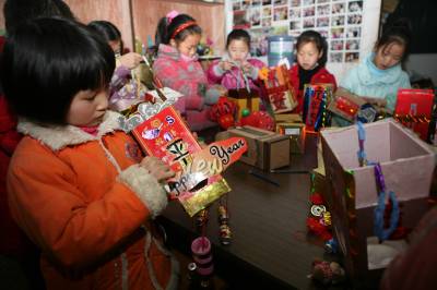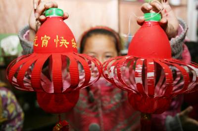 2月27日,湖北省襄樊未来阳光学校组织学生开展”低碳灯笼、节约元宵”课外兴趣活动,让小孩利用家中废旧酒盒、饮料瓶等物品,自己动手变废为宝,制作各式”低碳”传统元宵灯,在节俭中从小培养他们的环保意识。