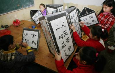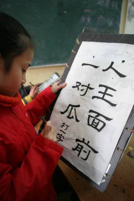 2月27日,湖北省襄樊学院少儿美术研究基地组织学员开展书法灯笼竞赛活动,让孩子们在自己亲手制作的元宵灯笼上创作书法作品,写上字谜或经典名言等内容,使他们在接受我国传统文化熏陶中,喜庆元宵佳节。