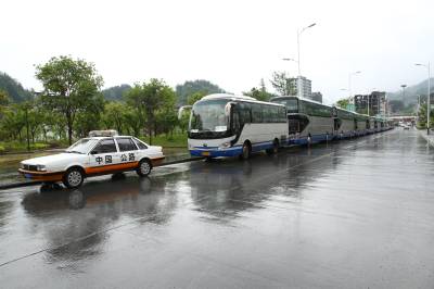 6月7日早上7点,由县交通运输局运管所组织的11辆大型客运车辆准时开进县职业高中校园,接送考生到达县一中考点。