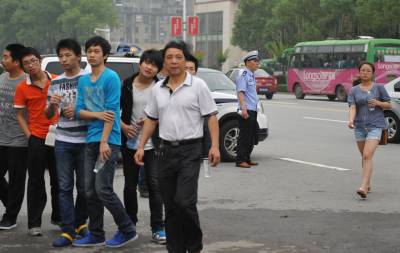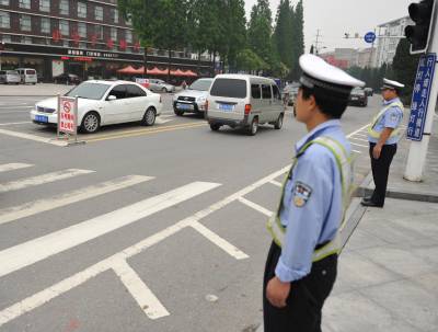 6月7日,湖北省潜江中学考点门前,一位交警在执勤。潜江交警部门提前规划、部署,制定了详细的交通保障方案,交警部门几乎全员出动,全力保障高考期间道路交通安全畅通。