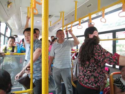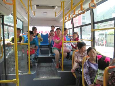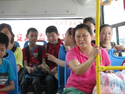 6月7日中午,竹山县潘口乡政府几名干部乘上由竹山一中新校区开往城区的公交车进城,脸上露出了灿烂的笑容。6日,由竹山亨运集团有限公司购置的首批城市公交车投入运行,出行的路线为竹山县绿松石城至竹山一中新校区,途经竹山城区纵横大道、潘口政府、潘口中心学校、小璇居委会、潘口小学,票价为2元,这标志着竹山县县城有了公交车。竹山县城公交车的开通,提升了城市服务功能,有效缓解了市民出行乘车难的问题,受到了市民的一致好评。(本报视界网 王定生 摄)(电话15347279289)