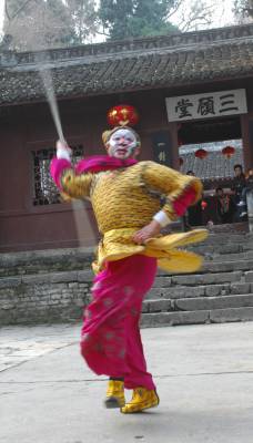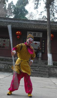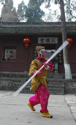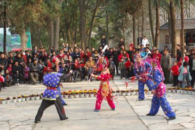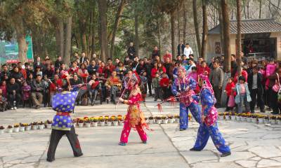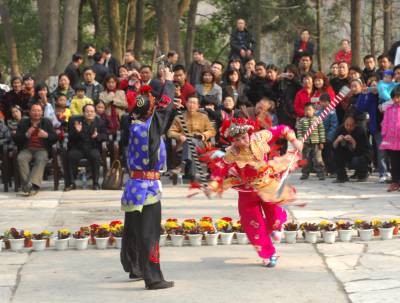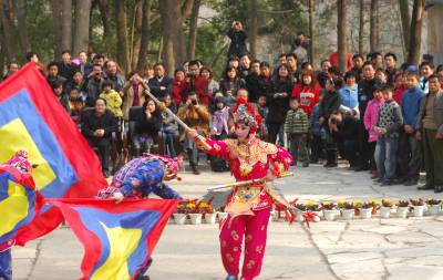 2月27日,演员在演出。当日,湖北省襄樊市隆中风景名胜区、襄樊市文化局组织专业与业余文艺团体进景区,向游客展示当地民俗和当地风情歌舞、国粹京剧。据介绍,在元宵佳节之际,景区将连续演出多日,为广大游客展示当地民俗和国粹表演