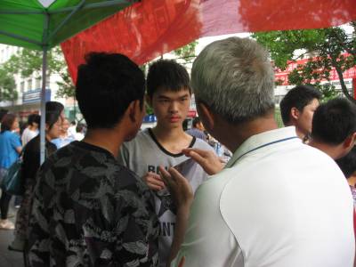 高考于6月7日、8日进行,湖北省云梦县高考工作秩序井然。在曲阳高中考点,上演了一幅幅动人温馨的画面。接送学生的专车,一路绿灯,交警护送;陪考的家长,或坐着小板凳,或席地而坐,静静等候,默默为学子们鼓励加油;身穿“超越梦想”鲜红T恤衫的老师们,用无声的语言鼓励学子们高考一搏,敢于“超越梦想” ……8日下午最后一场考试结束,有的学生走出考场,师生情不自禁,热情相拥,是感激,感恩?是高兴,激动?是依依不舍?师生感情真挚融洽,气氛和谐温馨。十年寒窗,今日相别,使人激动,让人动容!视界网 陈保忠 摄