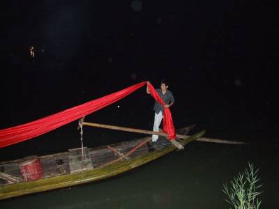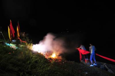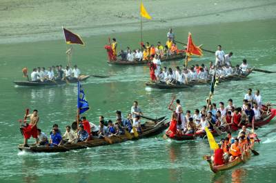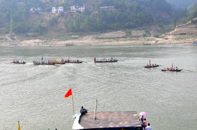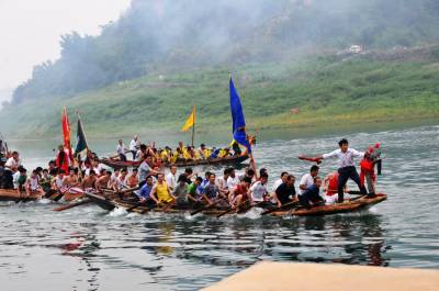 6日12日是我国传统的端午节日,每年的这天郧县柳陂镇韩家州都有几百年历史的龙船会都要在汉江与堵河口水面上举行,只见水面上5条船头装有青龙、黄龙、白龙和插有青、黄、白带有龙的龙旗的船只在多各桨手的号子声中在水面中穿梭,整个水面是锣鼓喧天,鞭炮齐鸣,冲天礼花的爆炸声不断,用整条香烟和鸭子投标的回乡成功人士在各处水面放炮投标,所有龙船闻炮即动向炮声炸响的浓烟处而去,去争抢水面上漂浮的多条香烟和鸭子。热闹的场面吸引着车城十堰市的许多市民前来观看,岸上的车流人流交汇在一起,给堵河口和汉江交汇处增添了节日的盛装。