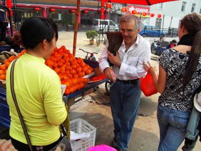 2月27日下午1时许,两名外国游客刚刚走下列车,就被宜昌特产水果——甜橙所吸引。他俩在得到摊主同意后,先品尝后购买,然后伸出大拇指:”OK!OK!Verygood!”提着水果满意离开。图为老外盛赞宜昌水果甘滋美味。