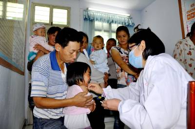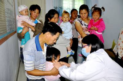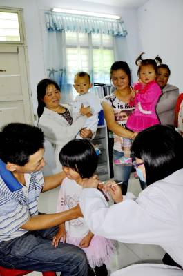 儿童疫苗“无缝对接” 6月11日,在恩施市红土乡红土溪村儿童临时接种点上,医务人员正在忙着给儿童注射免费疫苗。 近几年来,该乡卫生部门按照“知情同意、自愿接种、免费接种”的原则,预防接种是控制、消灭传染病,保障接种人群健康采取的最有效、最经济的手段。实行儿童免疫接种监测全覆盖,村村设有便民接种室。同时,乡组建了临时接种服务队,约时定点上门服务,宣传预防疾病常识,实现了儿童接种“无缝对接”,受到社会各界欢迎。(本报视界网彭绍峰摄)